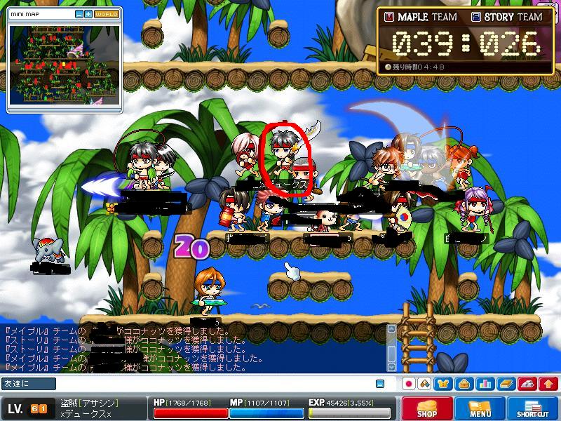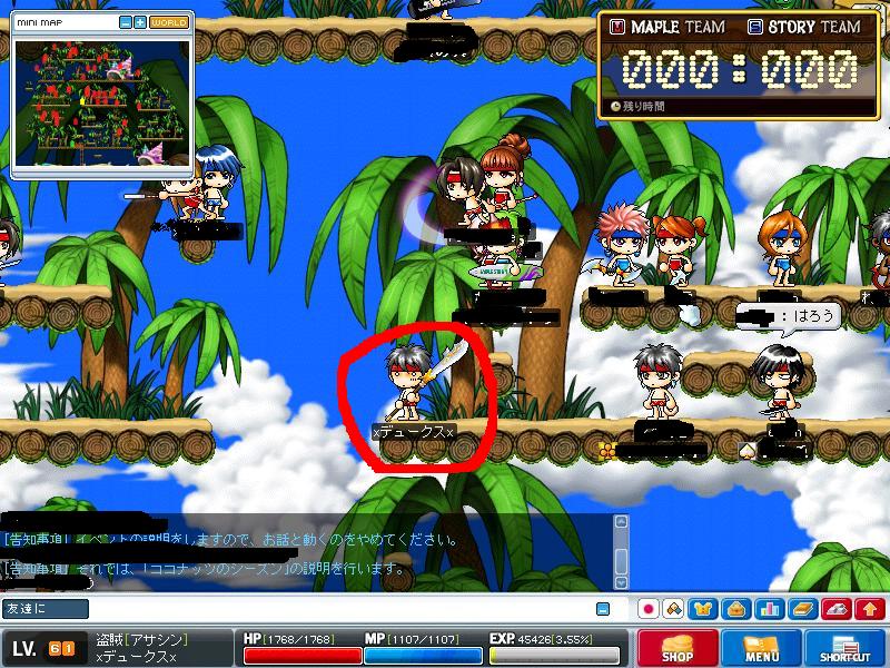 んでまぁ見事に入れましたw 内容は雪玉を転がせと同じようなもので二チームに分かれてココナッツを落とす内容でした↓参照
